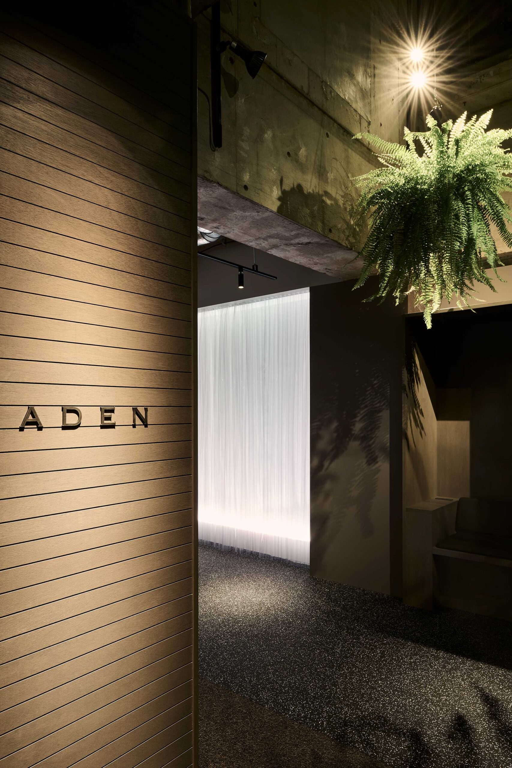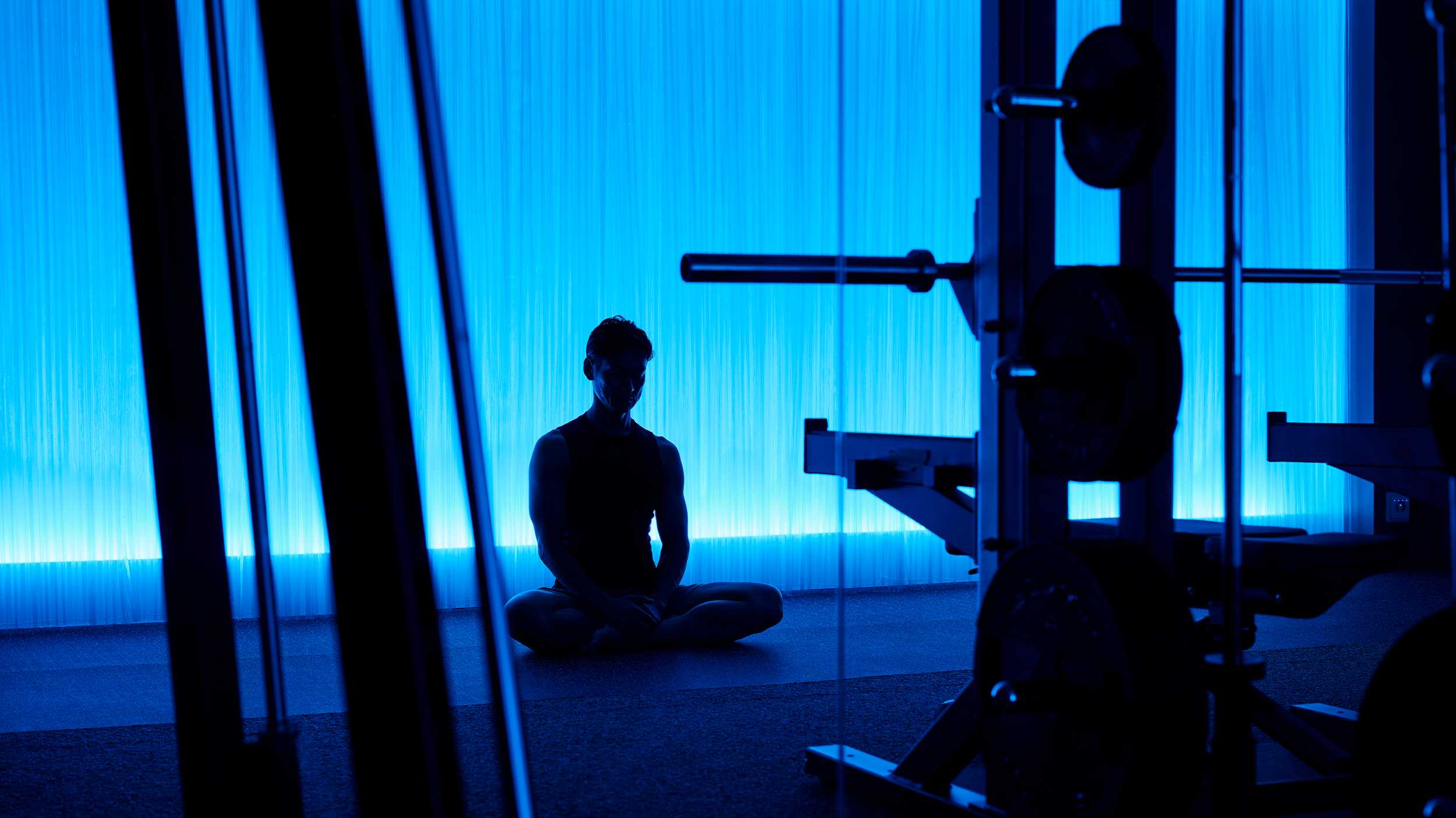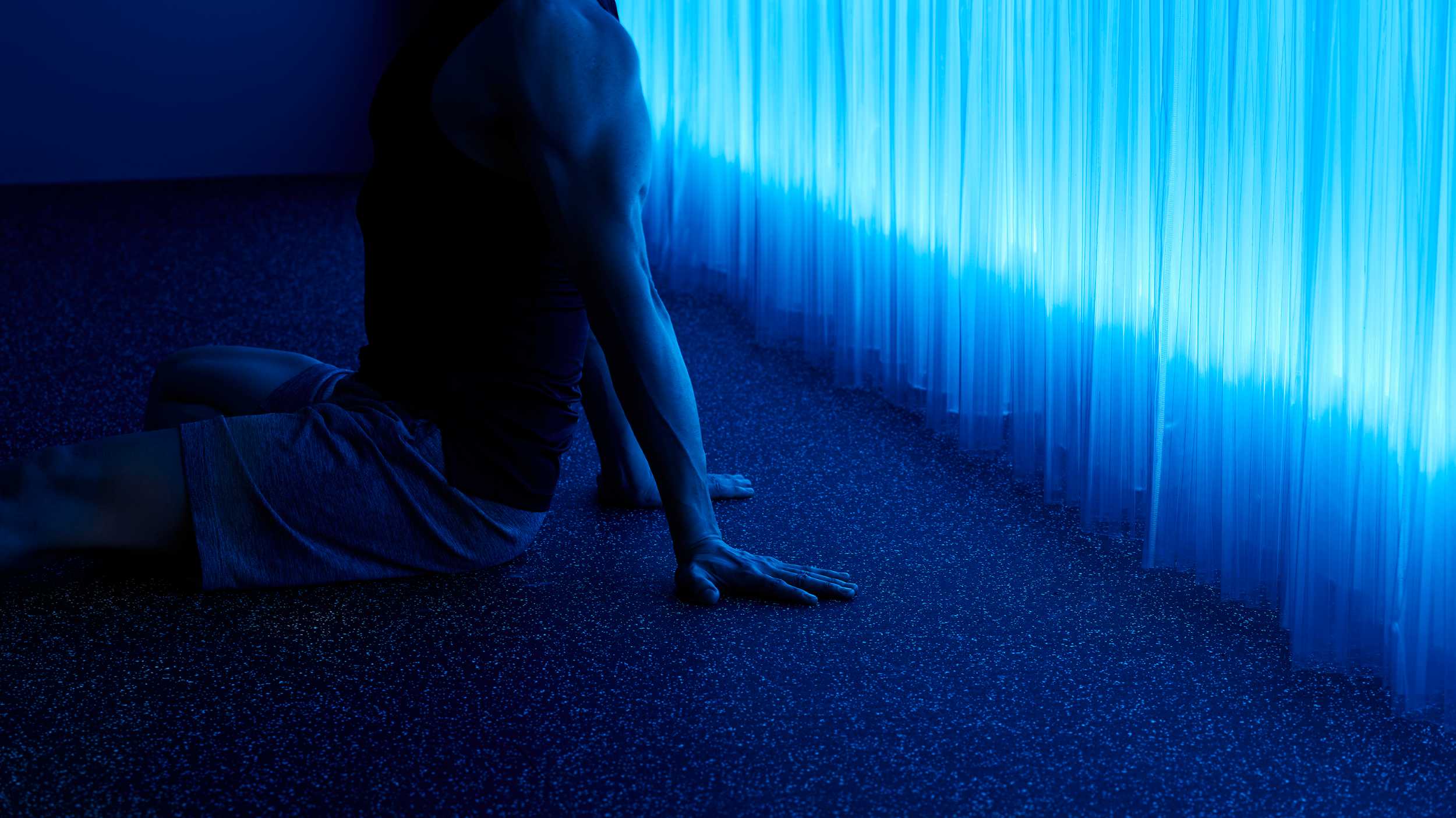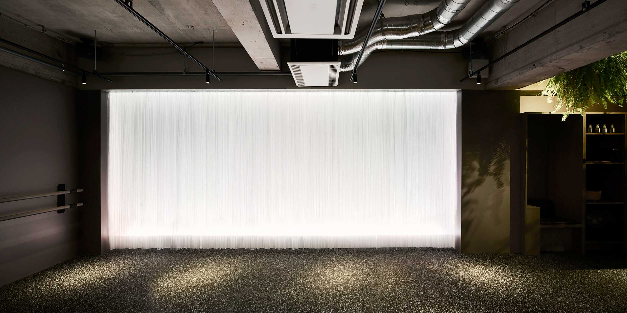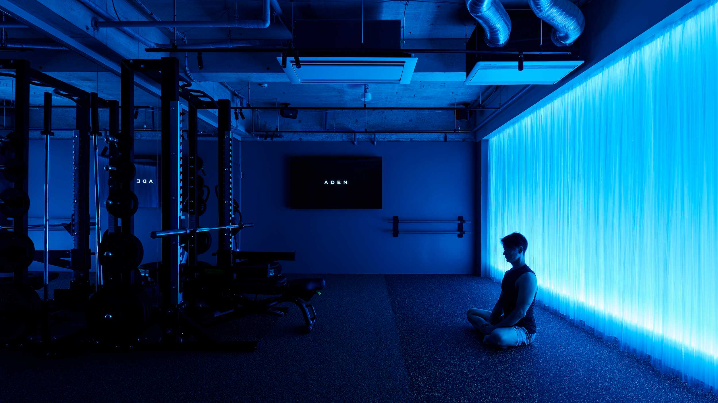 ADAMの2号店は、「肉体だけでなく五感からアプローチする」という当初からのコンセプトを大切に、地下空間に光の滝をつくりました。トレーニング内容に合わせて色や光の強さが変化し、暗い廊下を抜けた先で現れるその姿は、まるでを抜けた先に広がる滝のよう。