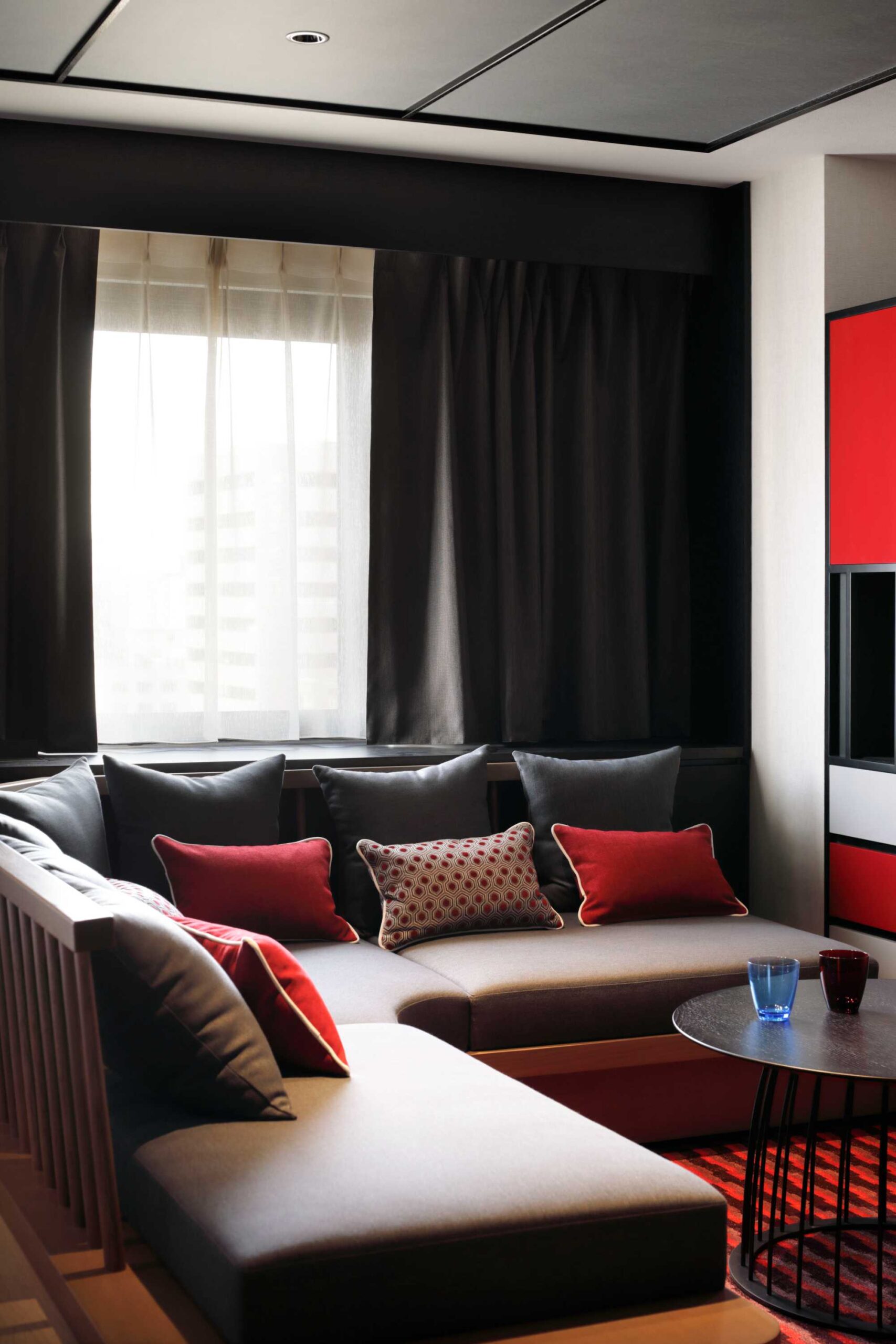 ここでは、心斎橋 という繁華街の energy をホテルに取り込みながら、徐々にクールダウンしながら、各客室へいざなうようなコンセプトとしました。