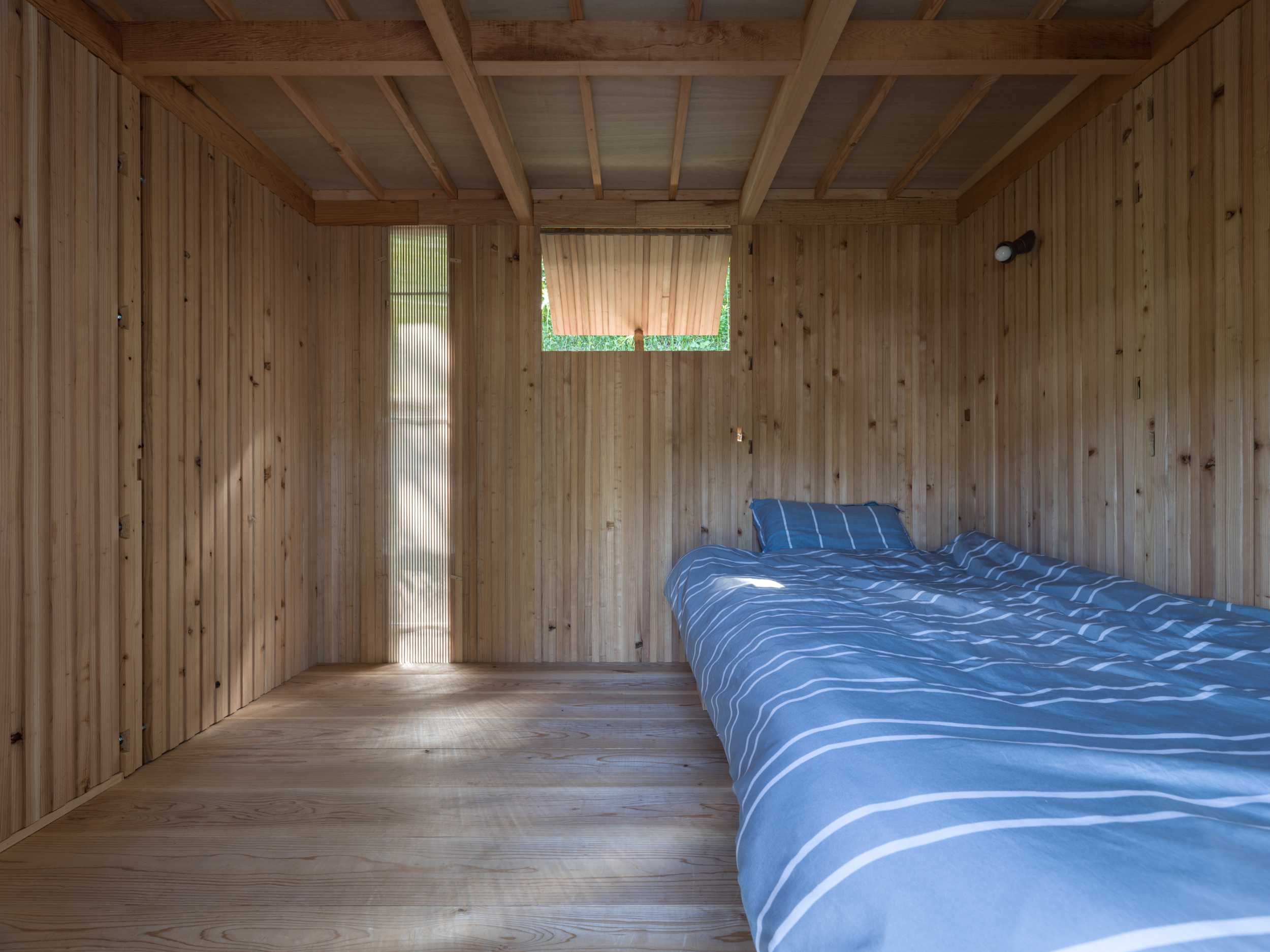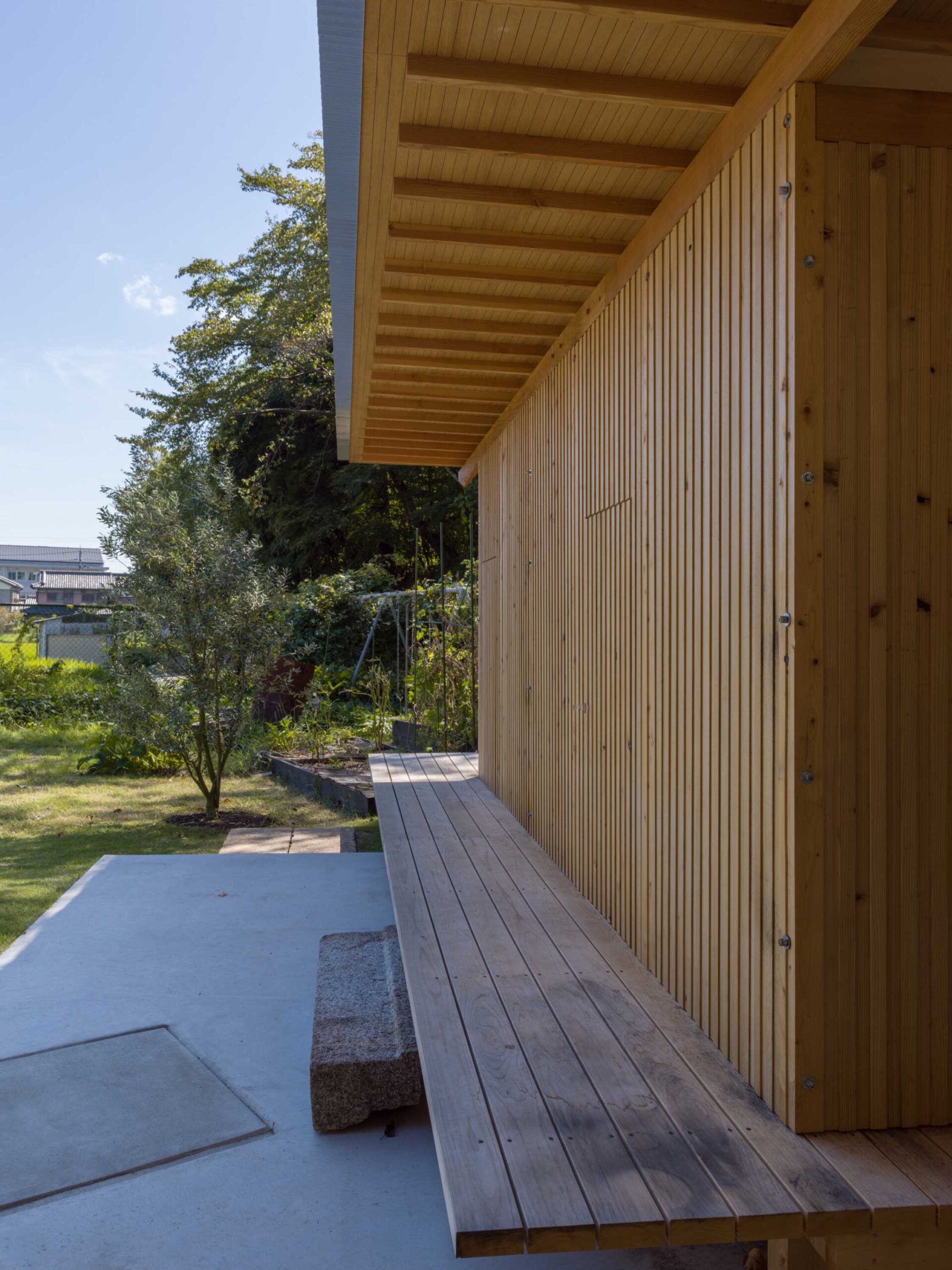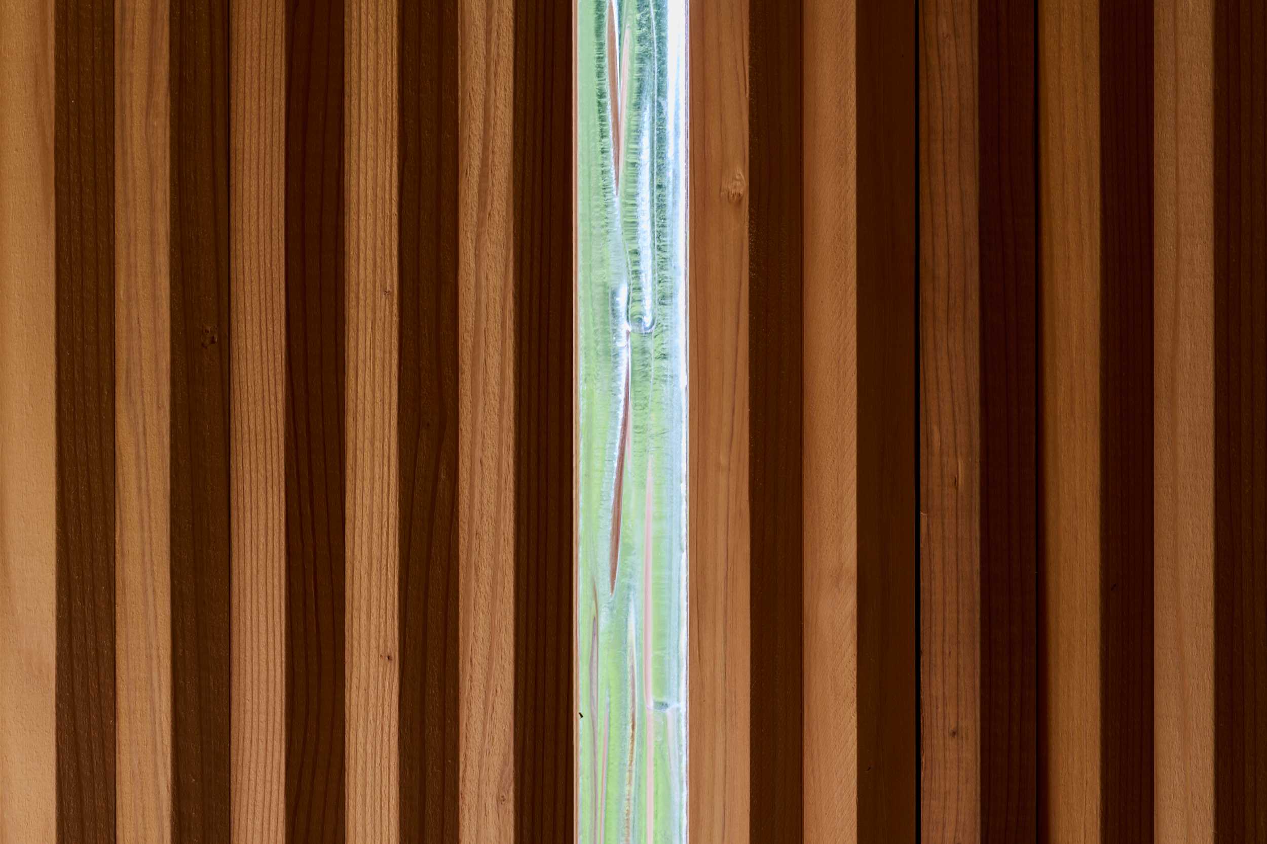基本的には30ミリ厚の杉板を短冊状にカットしたものを横積層してパネル状にして現場で組み立いきました。すべてがその30ミリのモジュールから発生した寸法になってます。