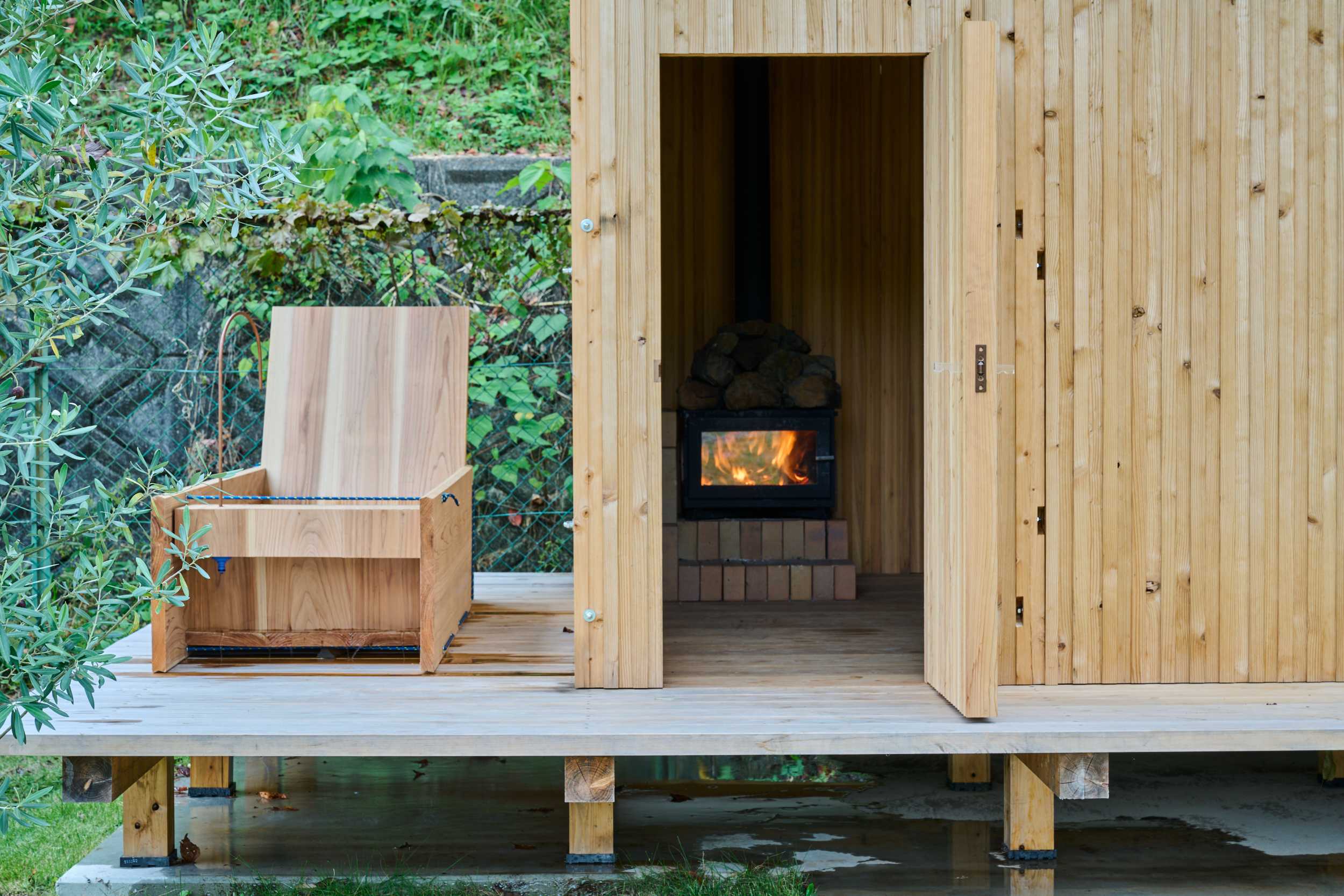 弊社にはサウナ小屋があります。