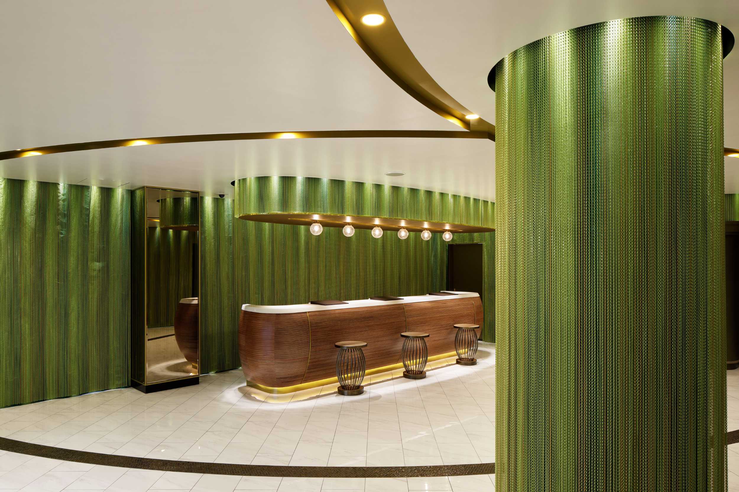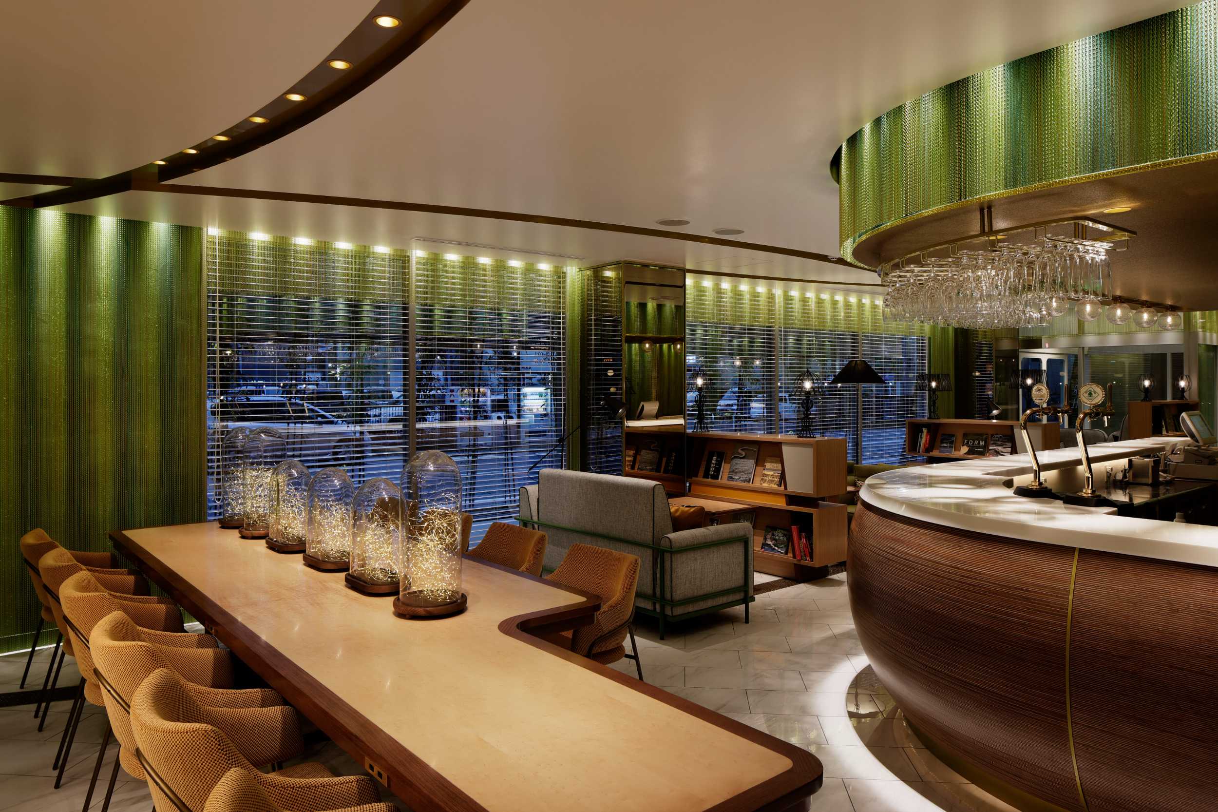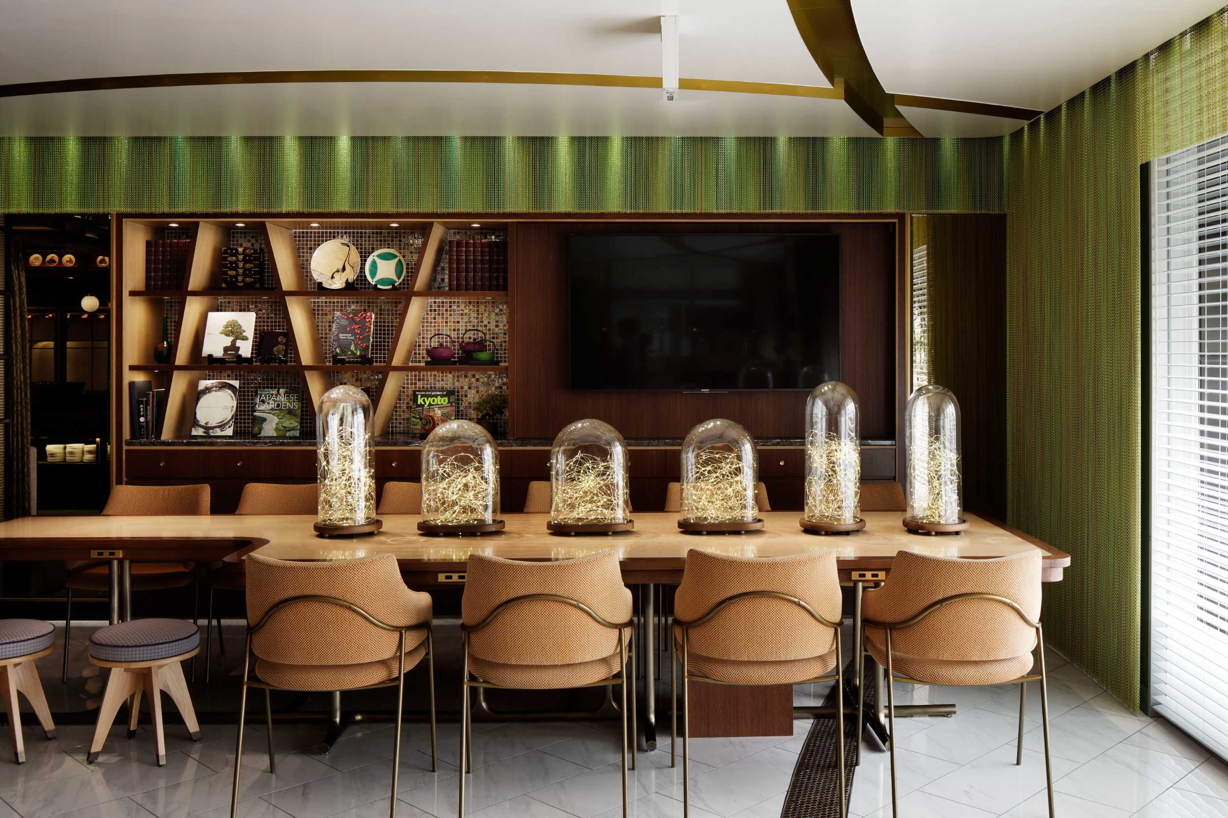 竹林をモチーフとしたフロントロビーから、その意匠を継承し、緩やかにつながるバーラウンジ。