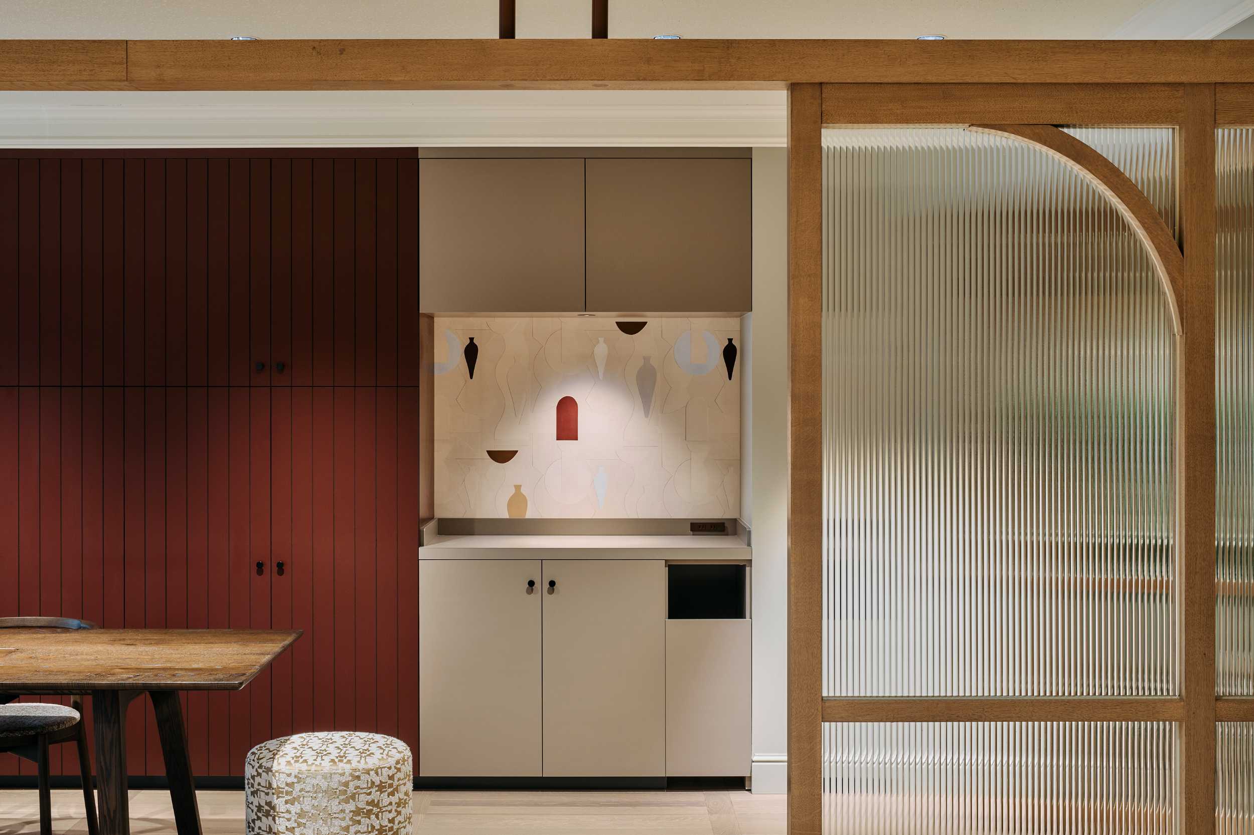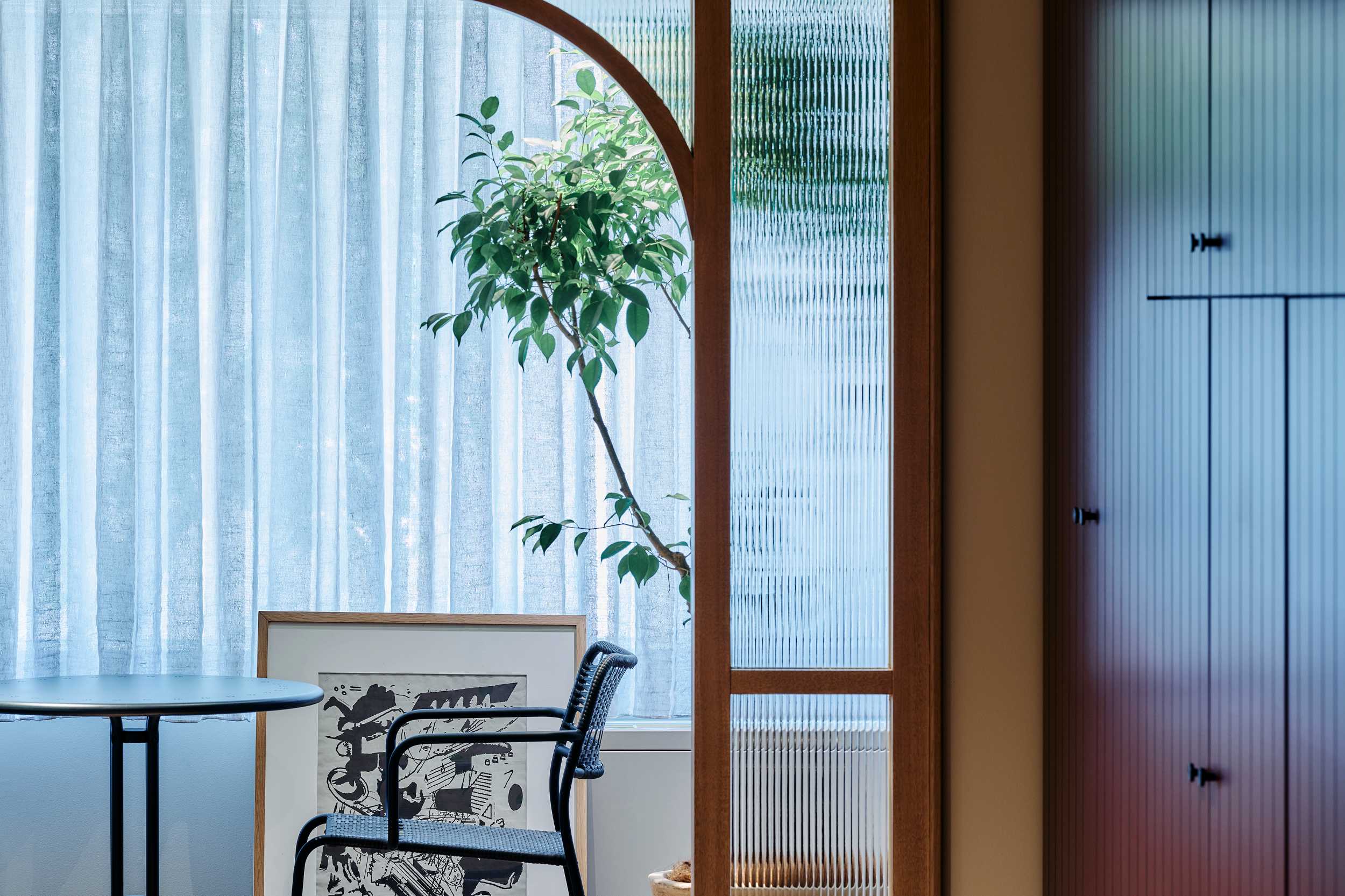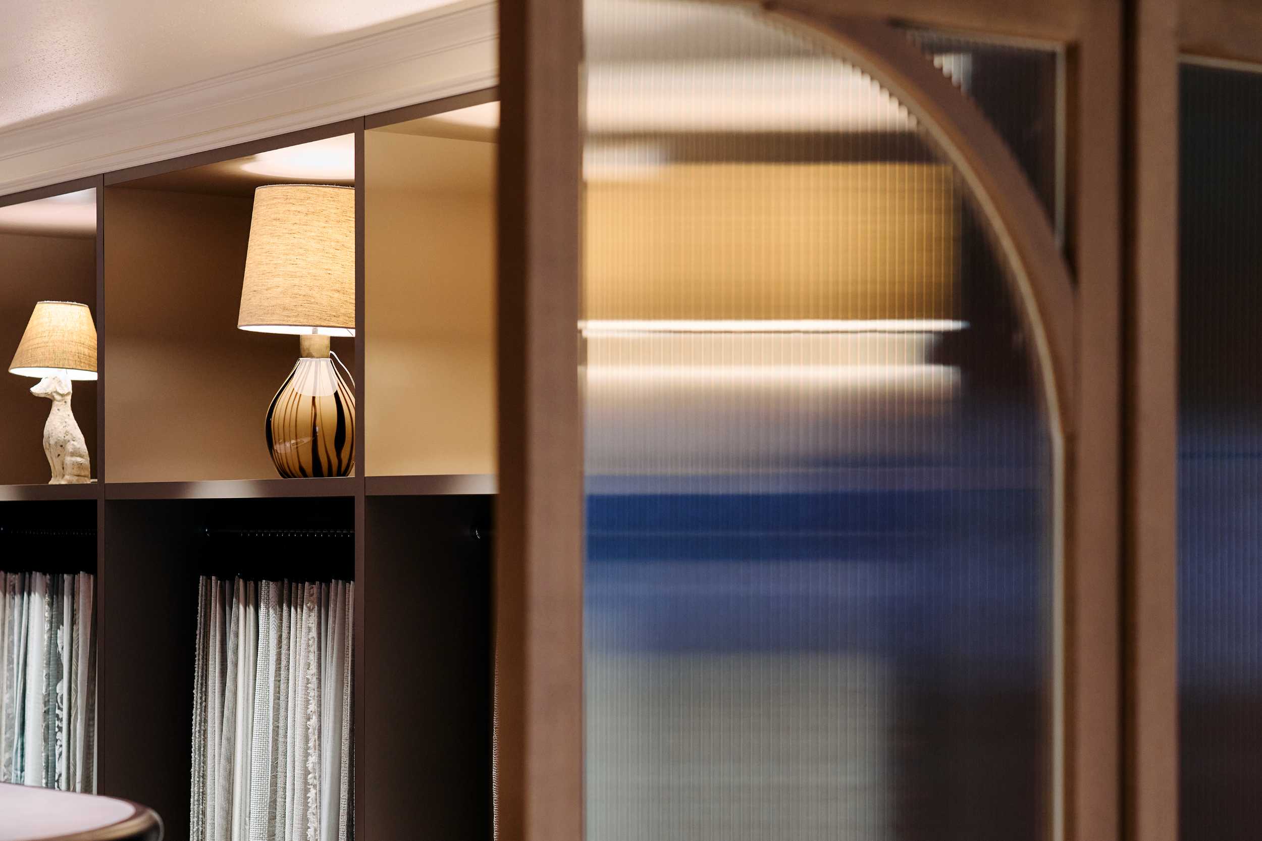 裏コンセプトは、ドラマ『エミリー・イン・パリ』。ニュートラルグレーの壁に設けたアーチゲートが奥の景色を額縁のように切り取り、モールディングやスタンドライトは同社取扱い製品で統一。@orac.officialのモールディングで作った額装には、フランス・エリティス社の壁紙を飾り、柔らかな色彩が空間に華やぎを添えます。@arflex_officialや、@stellarworks_official の家具にもマナトレーディングで扱うファブリックを設えました。光と素材が織りなす中で、働く人と集う人が自由と気品に包まれるオフィスとなりました。