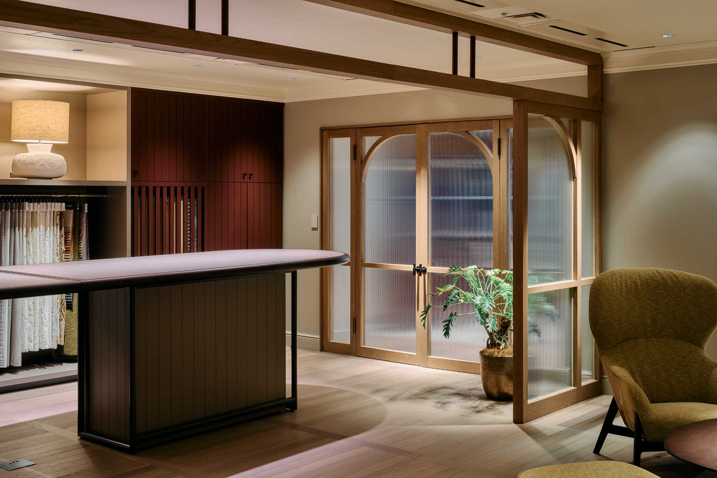 輸入ファブリックを扱うマナトレーディング大阪オフィスの改修では、コロナ禍で変化した働き方に応え、執務と交流が自然に交差する新しい場を目指しました。フリーアドレスを採用し、セミナーやミニパーティも開催できるライブショールームを併設。日々の業務と人とのつながりが穏やかに溶け合います。