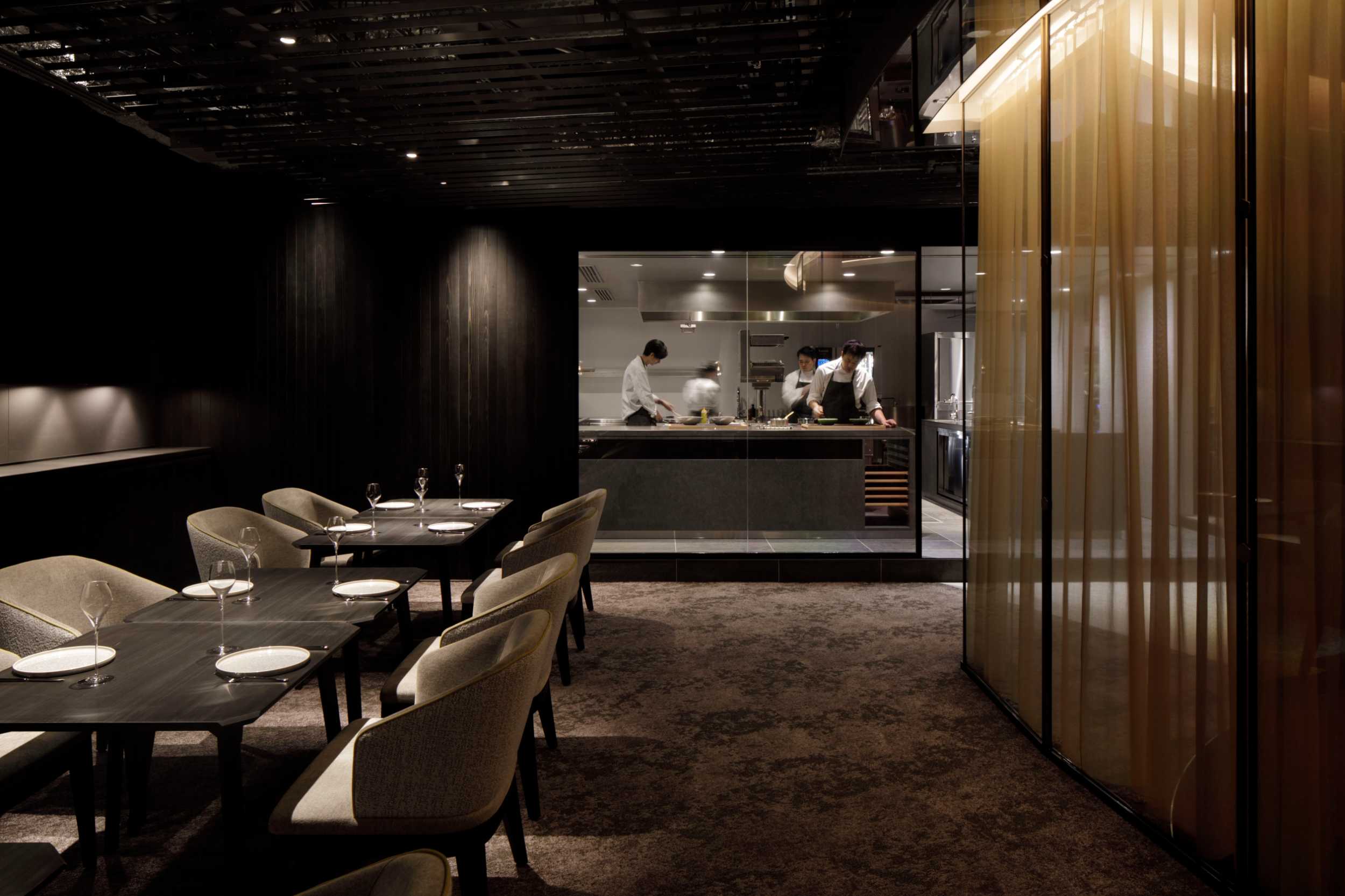 ここでは、調理のシズル感が伝わるように、オープンキッチンを採用しました。